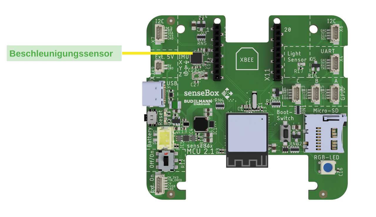 Der Beschleunigungssensor ist auf der MCU S2 verbaut! Du musst hier also nichts weiter anschließen.