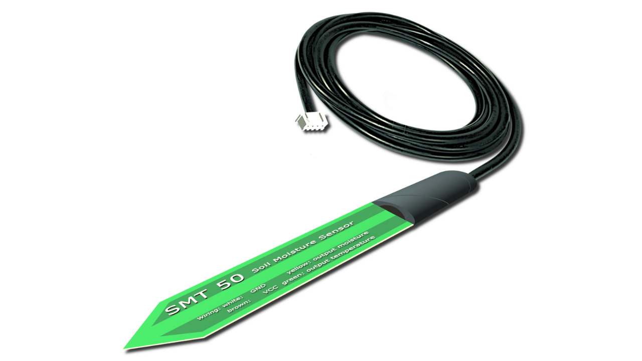 Der Truebner SMT50 ist ein kapazitiver Bodenfeuchte- und Temperatursensor und eignet sich daher gut für diverse Anwendungen im heimischen Garten. Kapazitive Bodenfeuchtesensoren erzeugen ein elektrisches Feld um ihre Messelektroden herum. Das Feld dringt in den umgebenden Boden ein. Die Messelektronik des Sensors ermittelt die resultierende elektrische Kapazität der Elektroden. Je höher der Wassergehalt im Boden ist, desto größer wird die Messkapazität des Sensors.